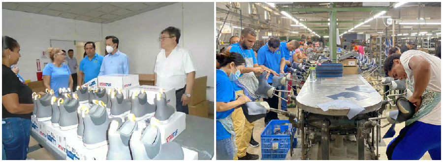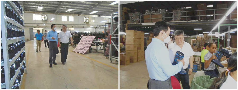 Ambassador Zhang Run and his delegation visited the DJM factory and inquired about the status of production and orders. When Ambassador Zhang Run heard that DJM’s output and quality had been greatly improved, he said emotionally, "When I visited DJM factory two years ago, there were only two assembly lines here, with a daily output of less than 1,000 pairs. Two years later, when I visited again, DJM already had five assembly lines, with a daily output of 3,500 pairs and the quality had also been significantly improved. As the Chinese ambassador to Dominica, I am very pleased and proud to see that Chinese overseas enterprises could achieve satisfactory achievements in such a short time! " Ambassador Zhang Run's high affirmation inspired all staffs, and there was a bursts of long and warm applause at the scene.