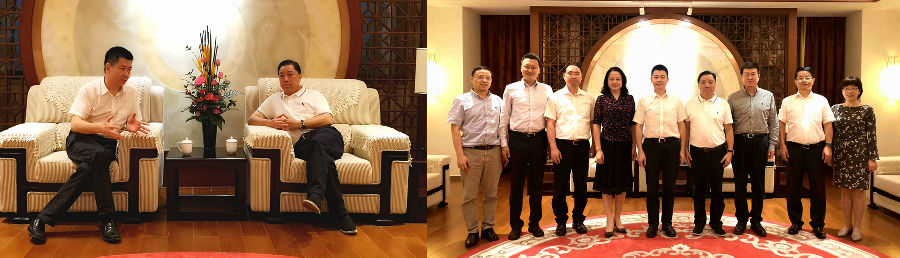 On June 13th, Mr. Xia Wendi, the General Manager of SINOMACH AUTOMOBILE CO., LTD, and his group visited the headquarter of Ningshing Holdings. Mr, Wu Yigang, the Chairman of Ninshing greeted the delegation warmly. The two partiers exchanged on the operation and future development of the joint-project namely SINOMACH NINGSHING AUTOMOBILE INVESTMENT and discussed the potentiality as to jointly expand overseas markets and other business.