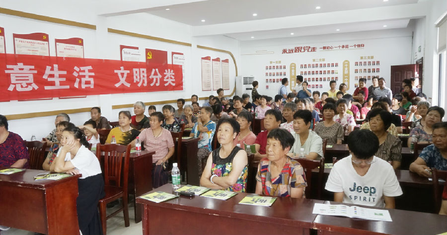 In this joint construction and exchange activity, Ningshing Holdings also invited Ren Haiyan from Haishu District Domestic Waste Classification Management Office to preach garbage classification related policies and classification knowledge to more than 70 villagers in Shanxiazhuang Village, so as to enhance villagers' awareness of the importance of garbage classification, enhance villagers' consciousness and participation in garbage classification and promote civilized rural style.