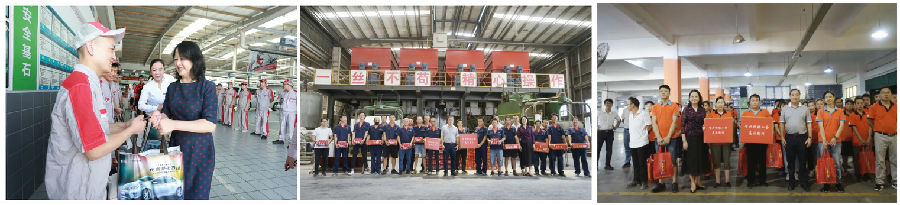 On August 19th and 20th, on behalf of Ningshing Holdings Board of Directors, President's Office, Company Party Committee and Labor Union, Mr. Wu Yigang, Chairman, Ms. Gao Ping, Vice Chairman, Secretary of the Party Committee and Chairman of the Trade Union, Mr. Wang Wentong, Vice President of Ningshing Holdings, and other major administrative personnel successively visited Zhoushan Ningshing Ship Building & Repairing, Ningshing Ubay Logistics Warehouse, Ningshing Yoyou Feed, Ningbo Sunflower Shading Equipment and Ningbo Sinomach Ningshing Automobile, and expressed solicitude to Ningshing front-line employees who stuck to their posts and worked hard in intense heat.