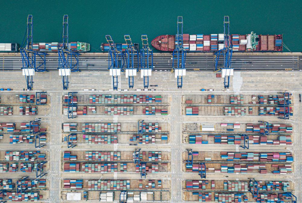 海南洋浦國(guó)際集裝箱碼頭一景(2022年11月5日攝,無人機(jī)照片)。新華社記者 蒲曉旭 攝