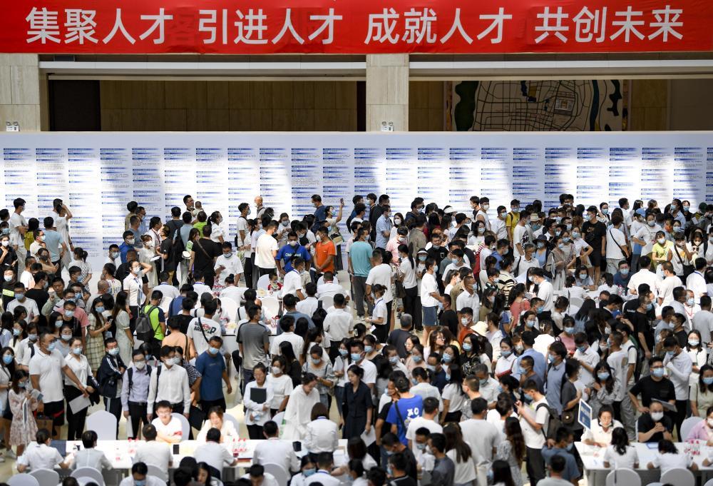 這是寧夏銀川萬人專場(chǎng)招聘會(huì)現(xiàn)場(chǎng)(2022年8月20日攝)。新華社記者 馮開華 攝