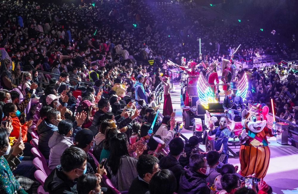 游客在廣州長(zhǎng)隆旅游度假區(qū)游園看馬戲表演(2022年12月31日攝)。新華社記者 劉大偉 攝